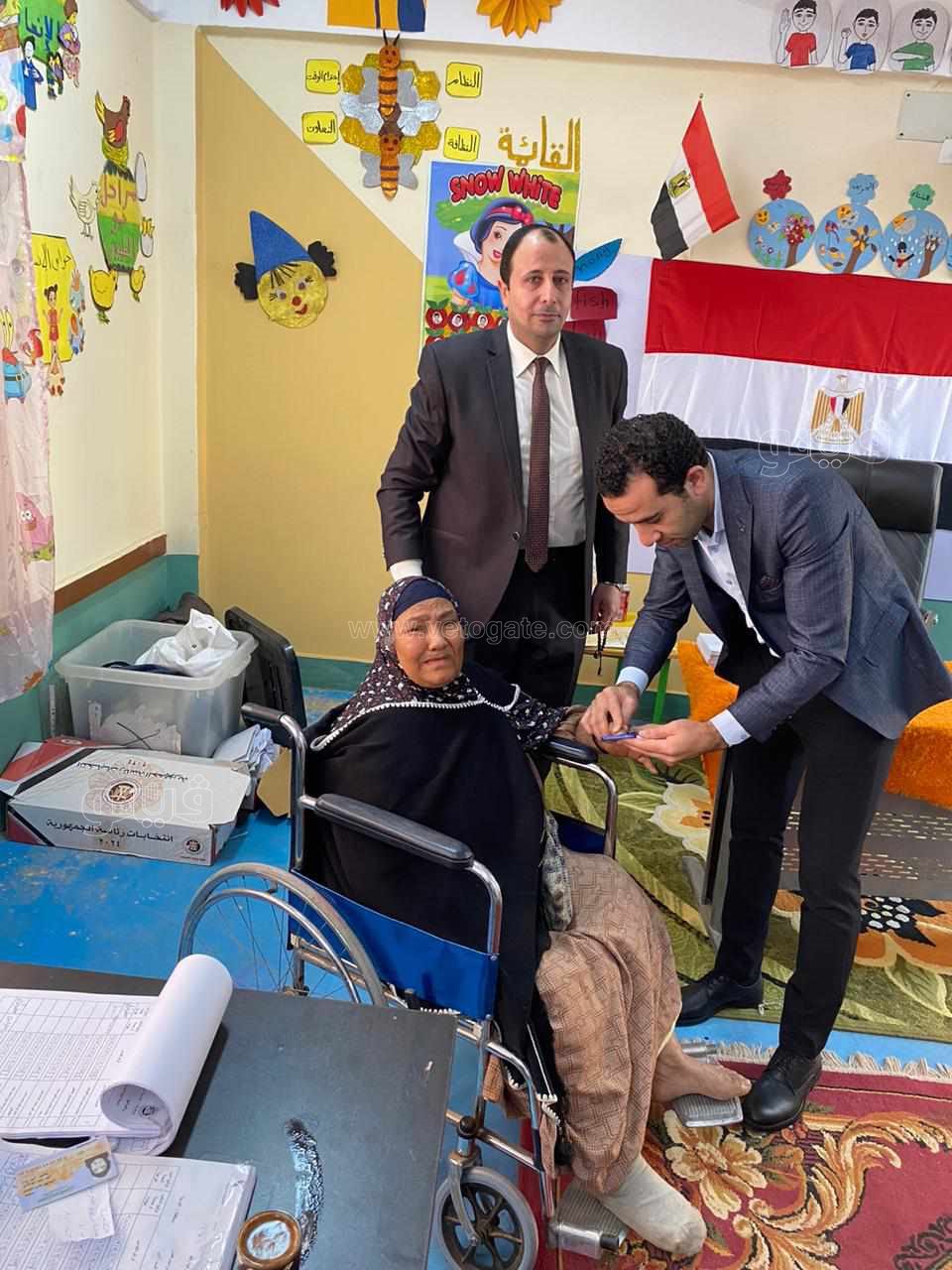 قاض يساعد مسنة للإدلاء بصوتها الانتخابي في زفتى (صور)