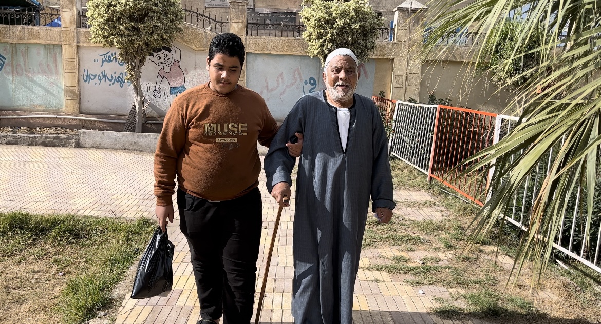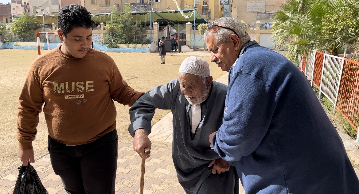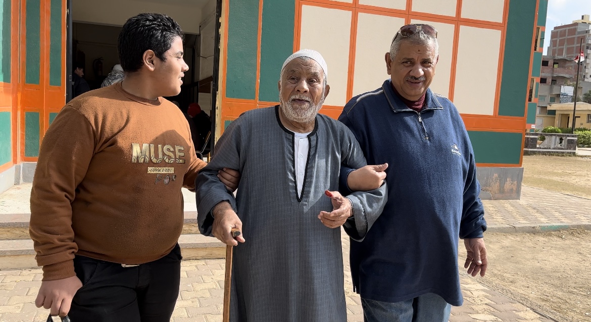 بمساندة حفيده، عجوز يدلي بصوته في الانتخابات الرئاسية بالبحيرة (فيديو وصور)