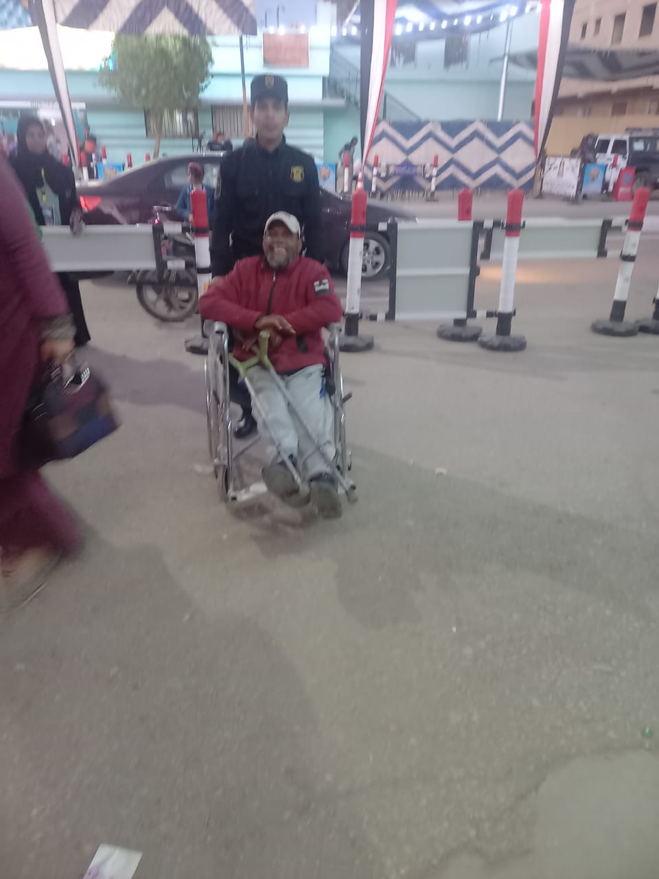 مسن بكرسي متحرك يدلي بصوته في الانتخابات الرئاسية 2024 بالجيزة