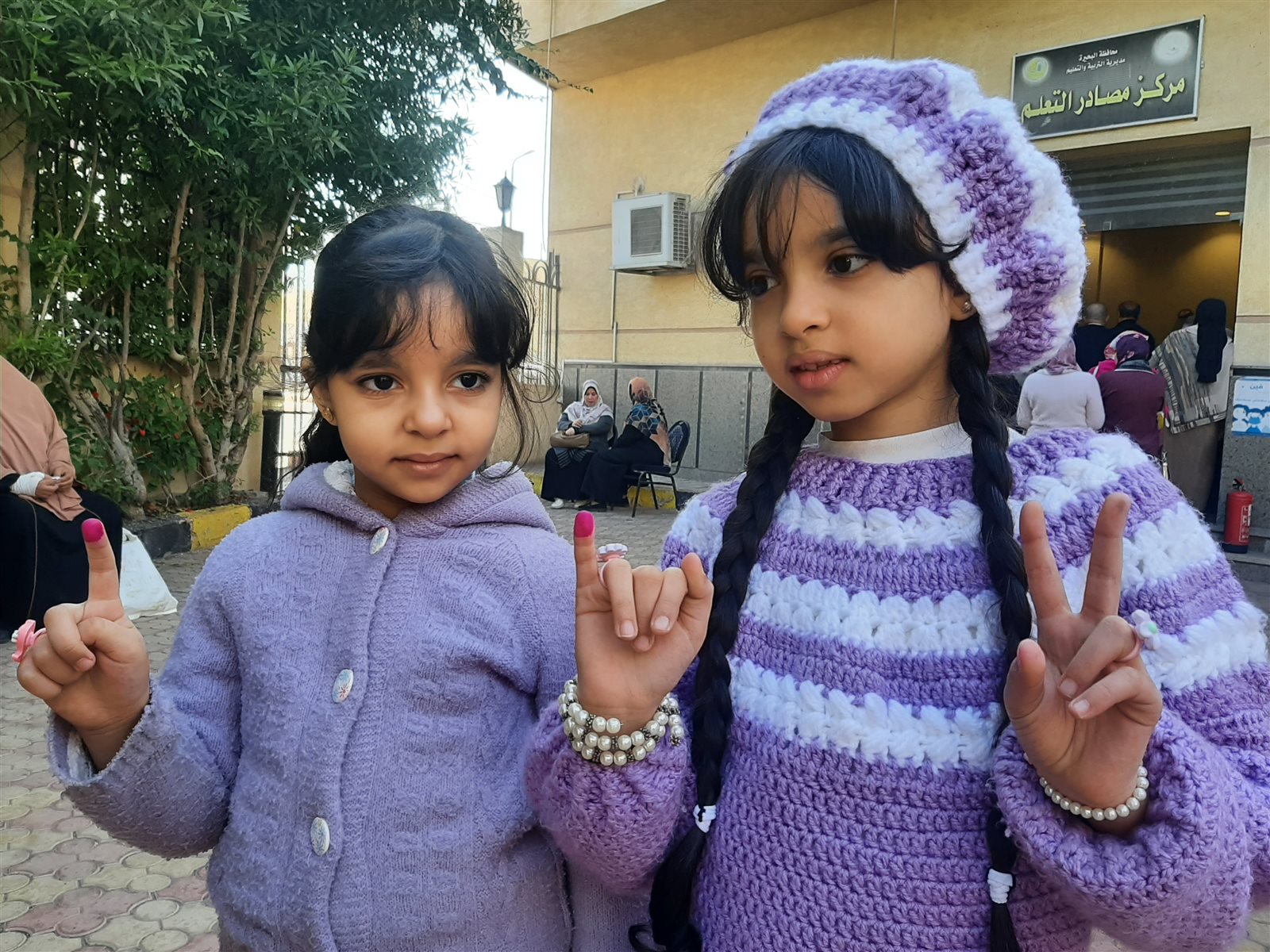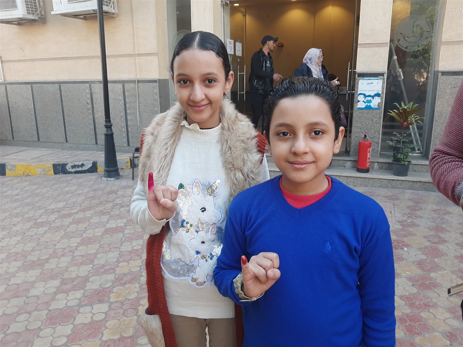 وعبر الأطفال عن فرحهم بوضع أصابعهم في الحبر الفسفوري أسوة بذويهم المرافقين لهم بـاللجنة الانتخابية بمحافظة البحيرة.
