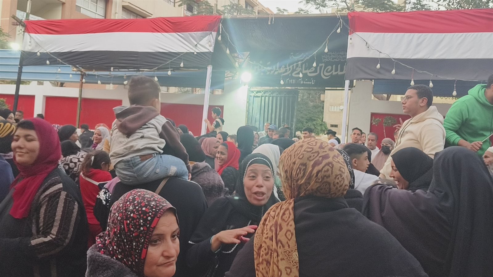وشهدت لجان محافظة القاهرة تجمع عدد كبير من السيدات والأطفال أمام اللجان الانتخابية رافعين أعلام مصر.