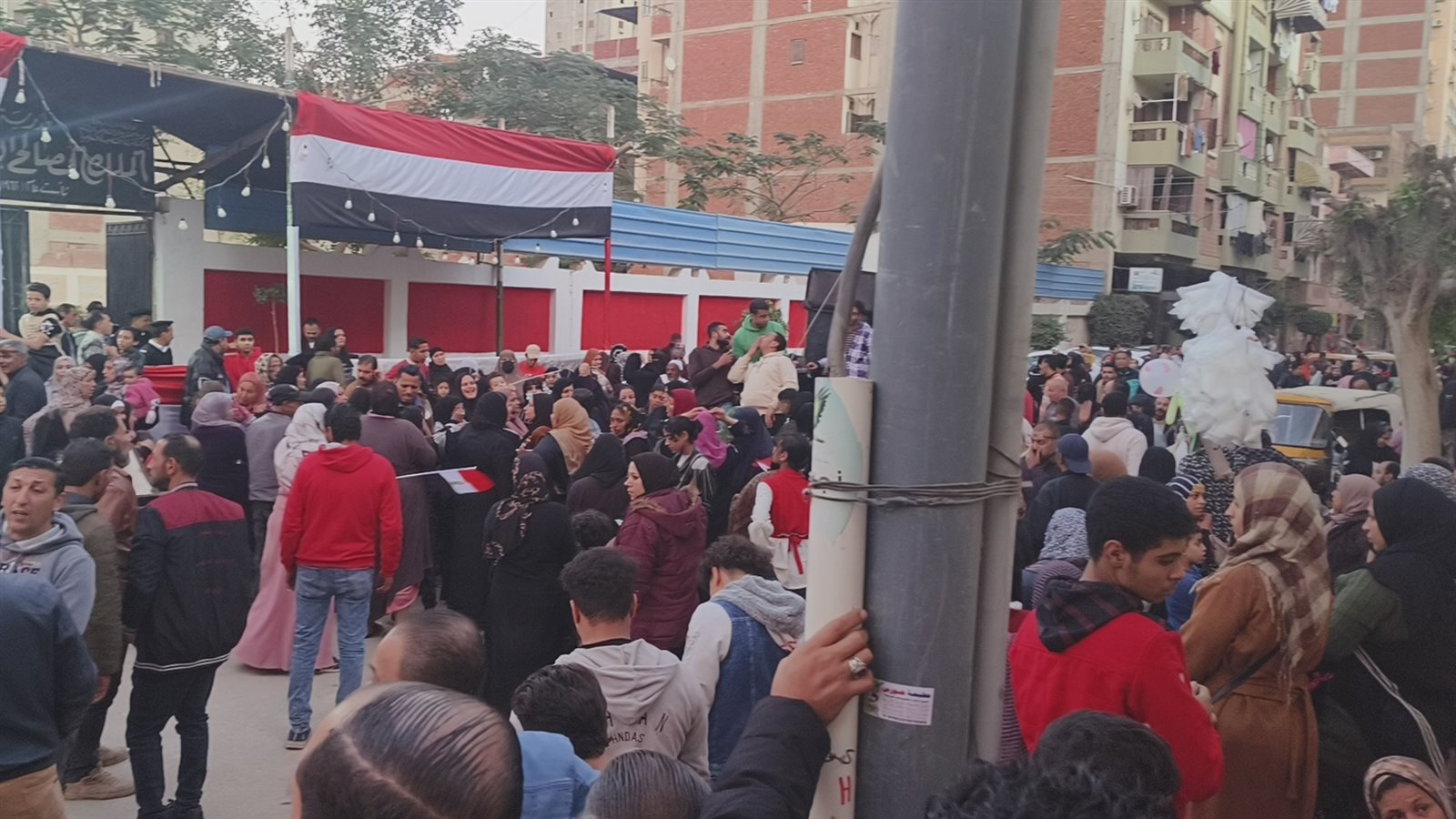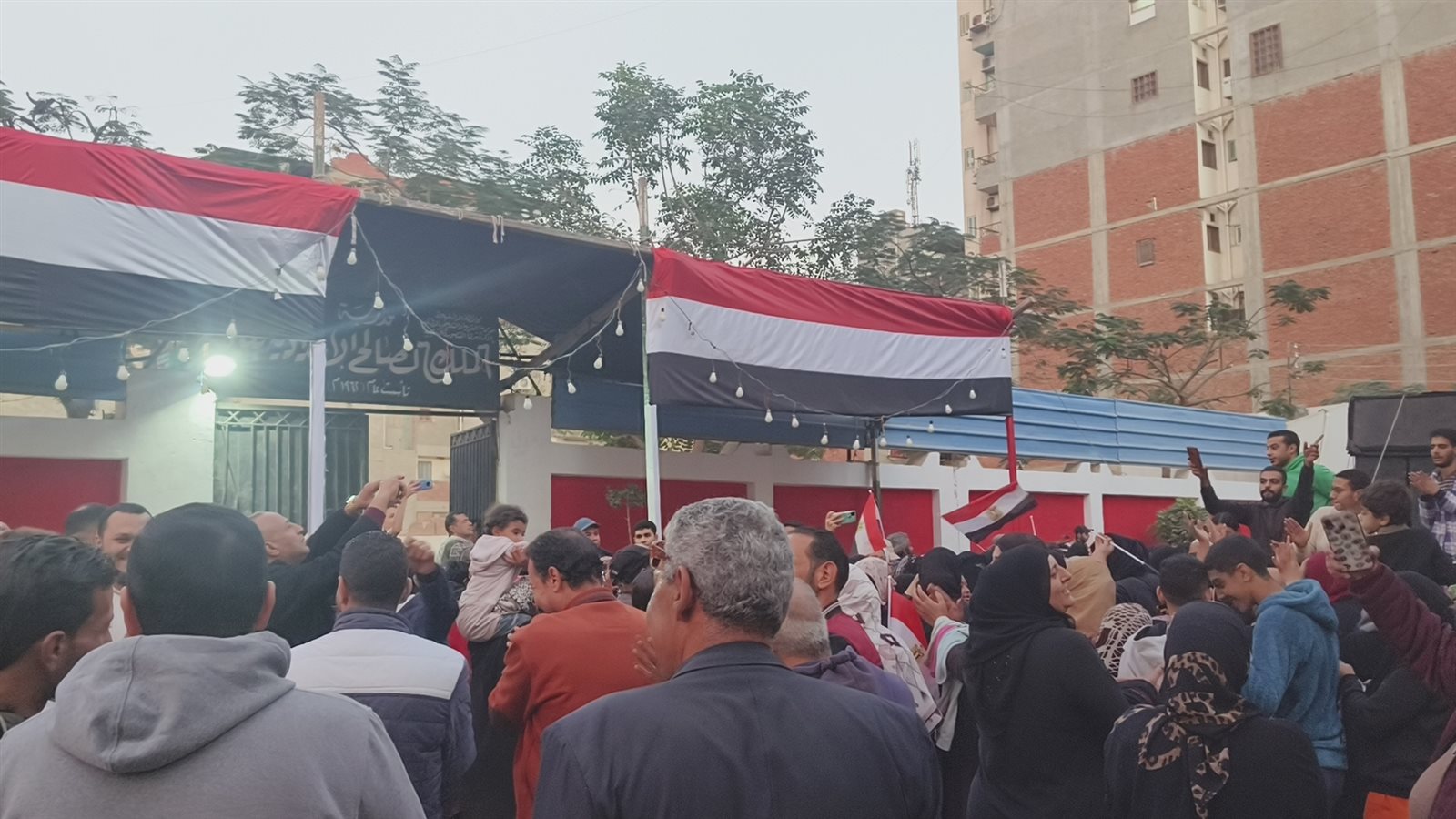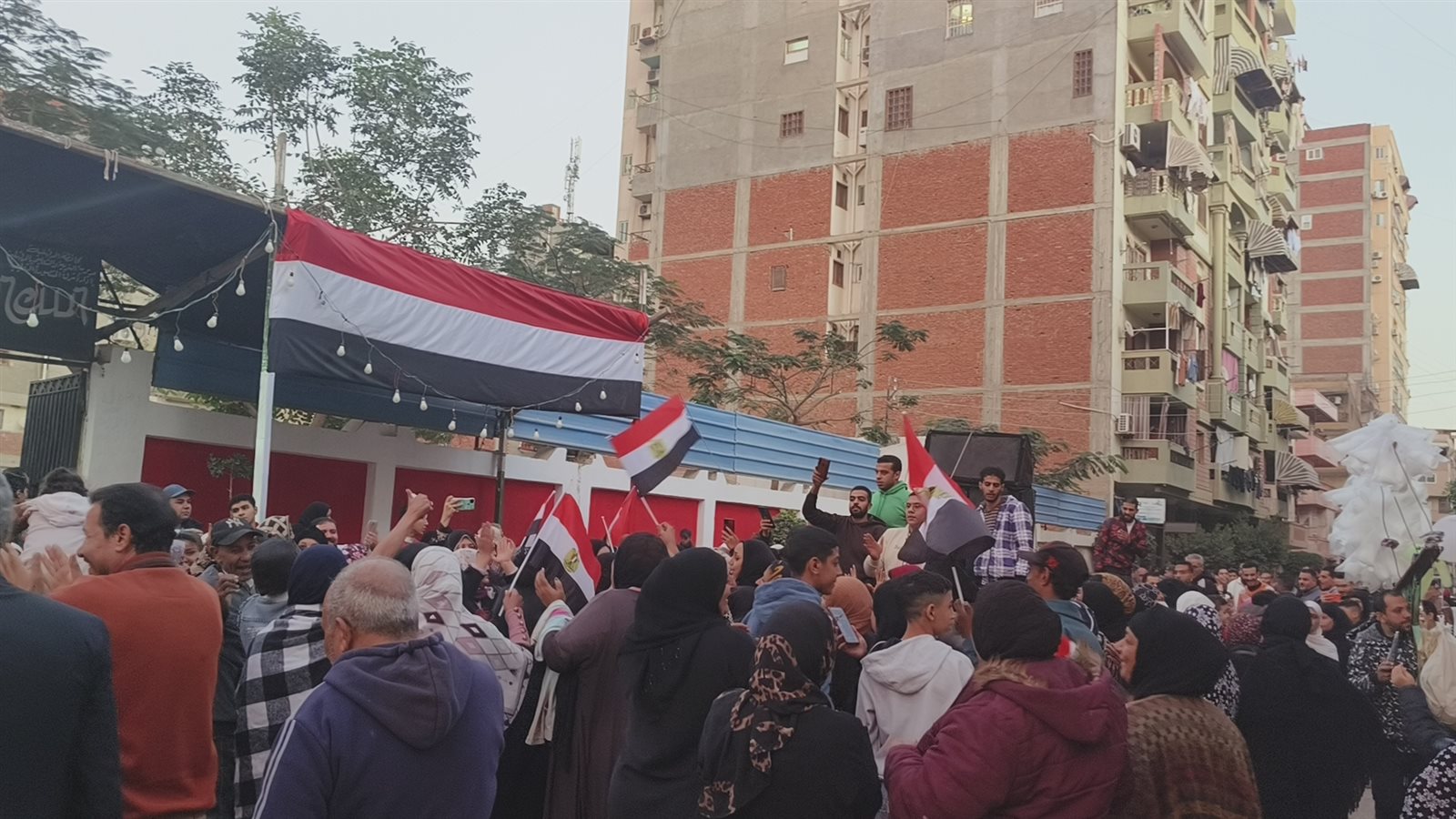 أغاني ورقص بالأعلام، احتفالات المصريين أمام اللجان الانتخابية بالجيزة (فيديو وصور)