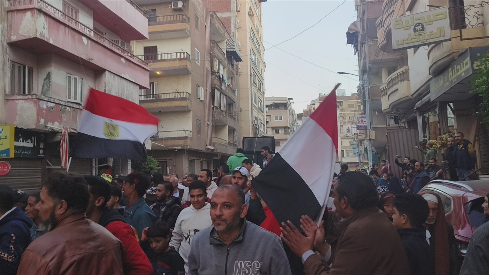 وخرج أبناء مدينة المنصورة وتحديدا مواطني قسم ثاني المنصورة بمسيرة كبيرة جابت الشوارع من مدرسة الملك الكامل الي مدرسة الملك الصالح.