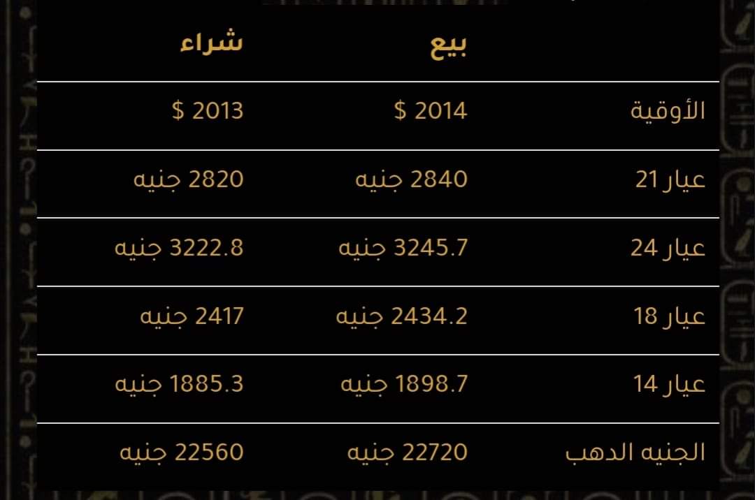 وسجل سعر جرام الذهب عيار 21 نحو 2840 جنيهًا للبيع.