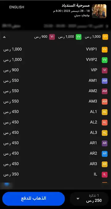 أسعار تذاكر مسرحية السندباد لـ كريم عبد العزيز تبدأ من 100 ريال وحتى 1000 ريال ونستعرض القائمة الكاملة للأسعار: