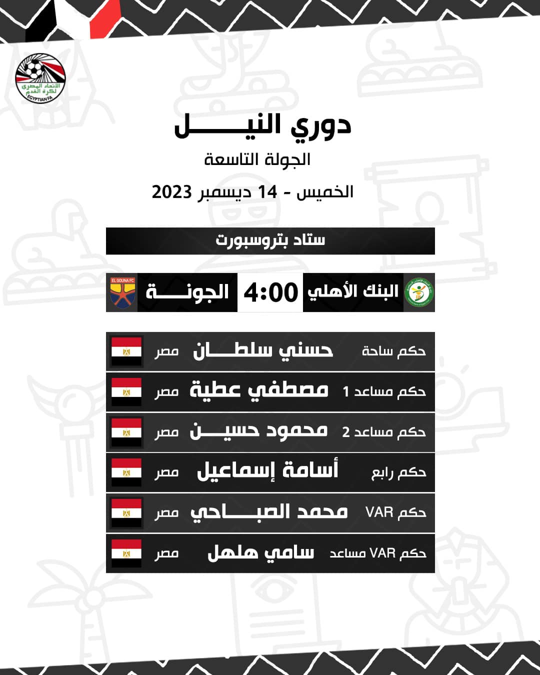 وجاءت مواعيد الجولة التاسعة لبطولة الدوري المصري كالتالي
