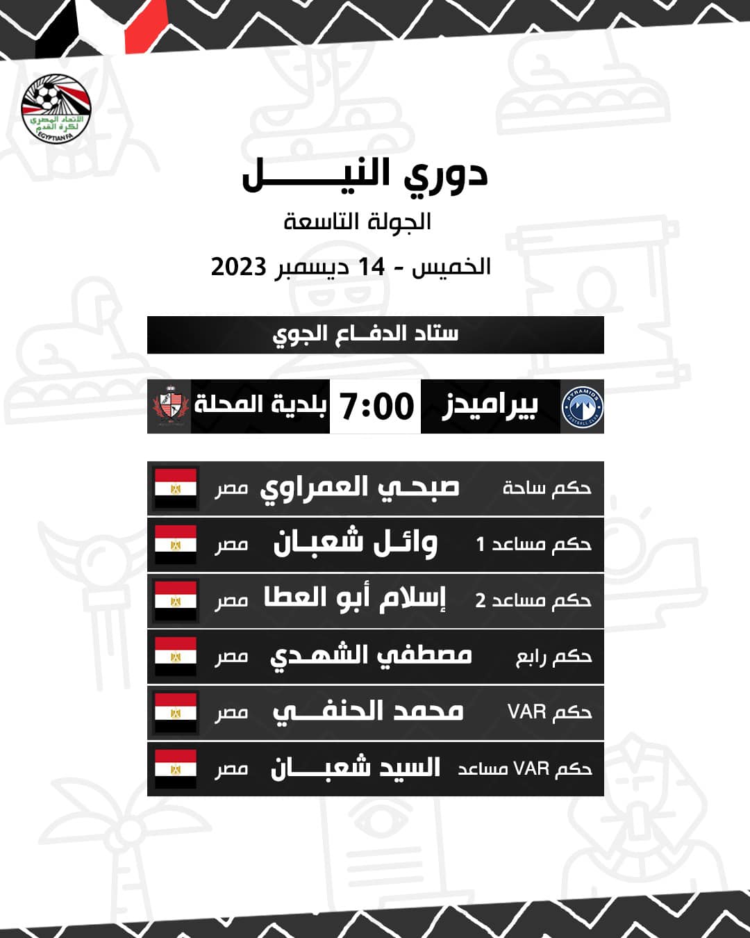 ومن المقرر أن تتوقف بطولة الدوري المصري يوم 2 يناير المقبل استعدادا لخوض الفراعنة منافسات كأس أمم إفريقيا بكوت ديفوار يناير وفبراير 2024.