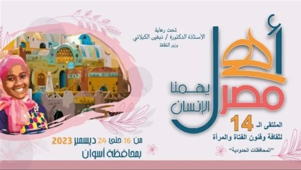 وتطلق الهيئة العامة لقصور الثقافة فعاليات الملتقى الثقافي الرابع عشر لثقافة وفنون الفتاة والمرأة ضمن مشروع "أهل مصر"، غد السبت، 16 ديسمبر، بمحافظة أسوان، برعاية د. نيڤين الكيلاني وزير الثقافة، وتستمر فعالياته حتى 24 ديسمبر الحالي.