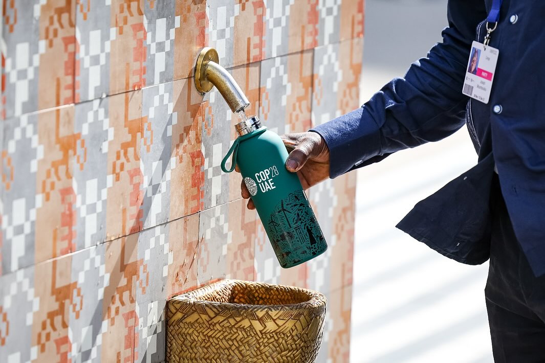 وأوصت رئاسة مؤتمر المناخ COP28 بشدة على إحضار زجاجة مياه قابلة لإعادة الاستخدام إلى مؤتمر الأطراف الثامن والعشرين والاستفادة من نوافير المياه الموجودة حول المكان، مشددة على أنه لا يسمح باستخدام البلاستيك أحادي الاستخدام في الموقع.