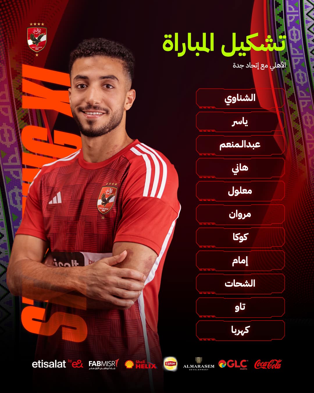 خط الوسط: مروان عطية، كوكا ،إمام عاشور