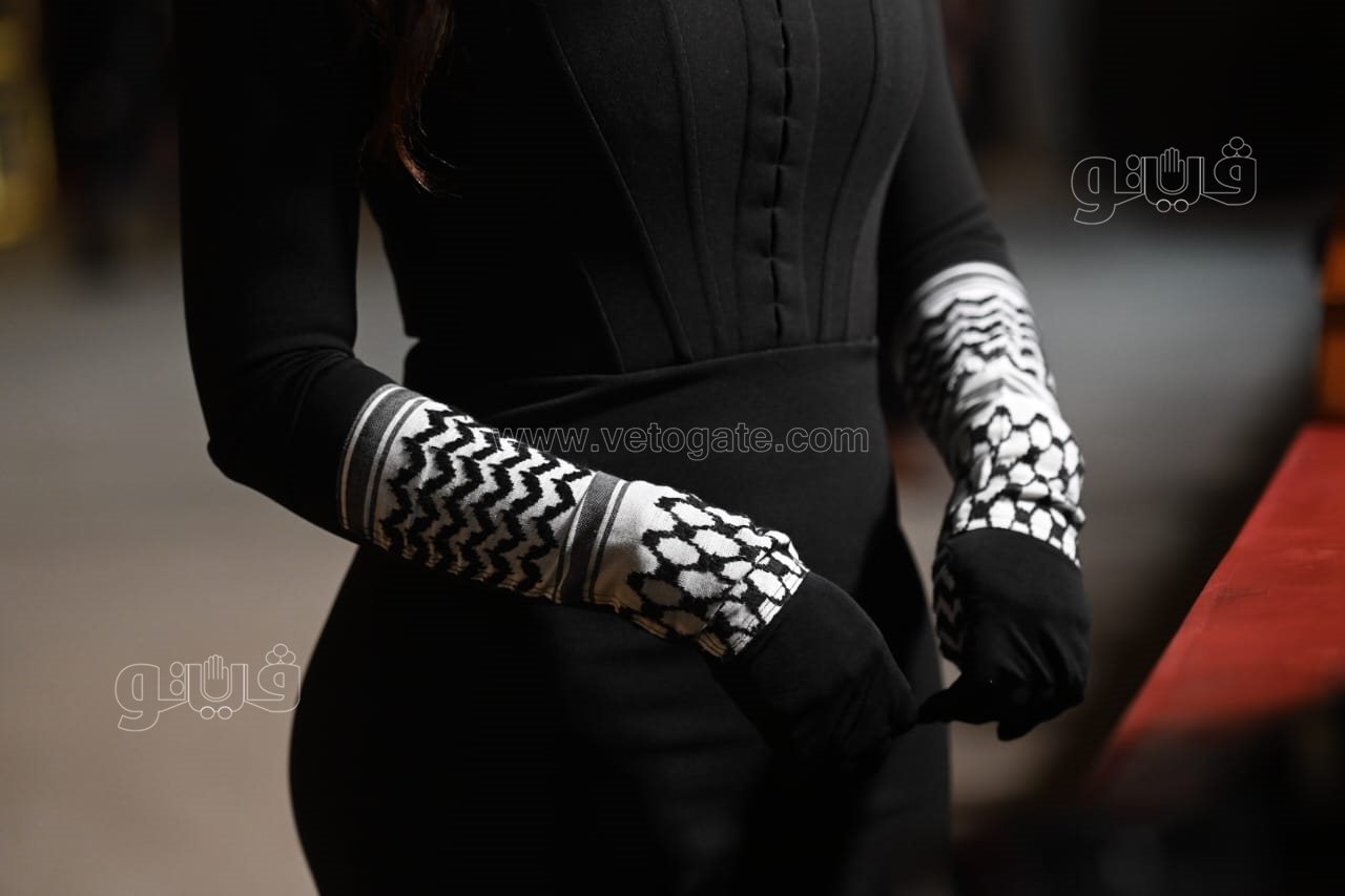 نسرين طافش بمعصم بألوان الشال الفلسطيني في عرض فيلم الاستاذ بمهرجان الجونة (صور)