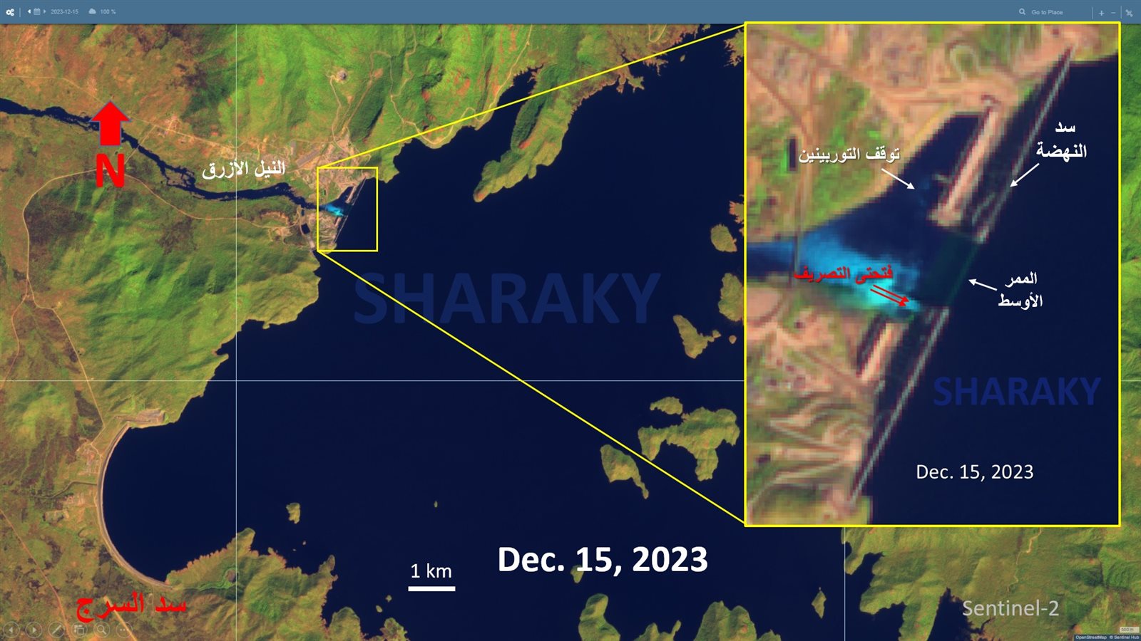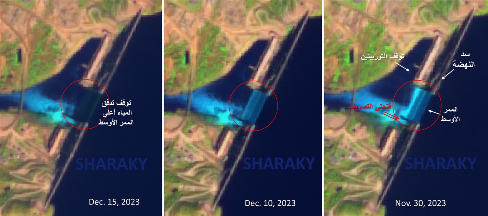 وكتب “شراقي” عبر صفحته الشخصية بـ"فيس بوك" تحت عنوان: "توقف تدفق المياه أعلى الممر الأوسط في سد النهضة" وقال: "انتهى التخزين الرابع لحوالي 24 مليار م3، وإجمالي 41 مليار متر مكعب في التاسع من سبتمبر الماضي، ومنذ ذلك التاريخ تتدفق المياه أعلى الممر الأوسط، واستمرار التدفق لأكثر من شهر ونصف رغم فتح بوابتي التصريف في 31 أكتوبر، 8 نوفمبر الماضي، يرجع ذلك إلى زيادة مسطح البحيرة إلى أكثر من 1000 كم2".