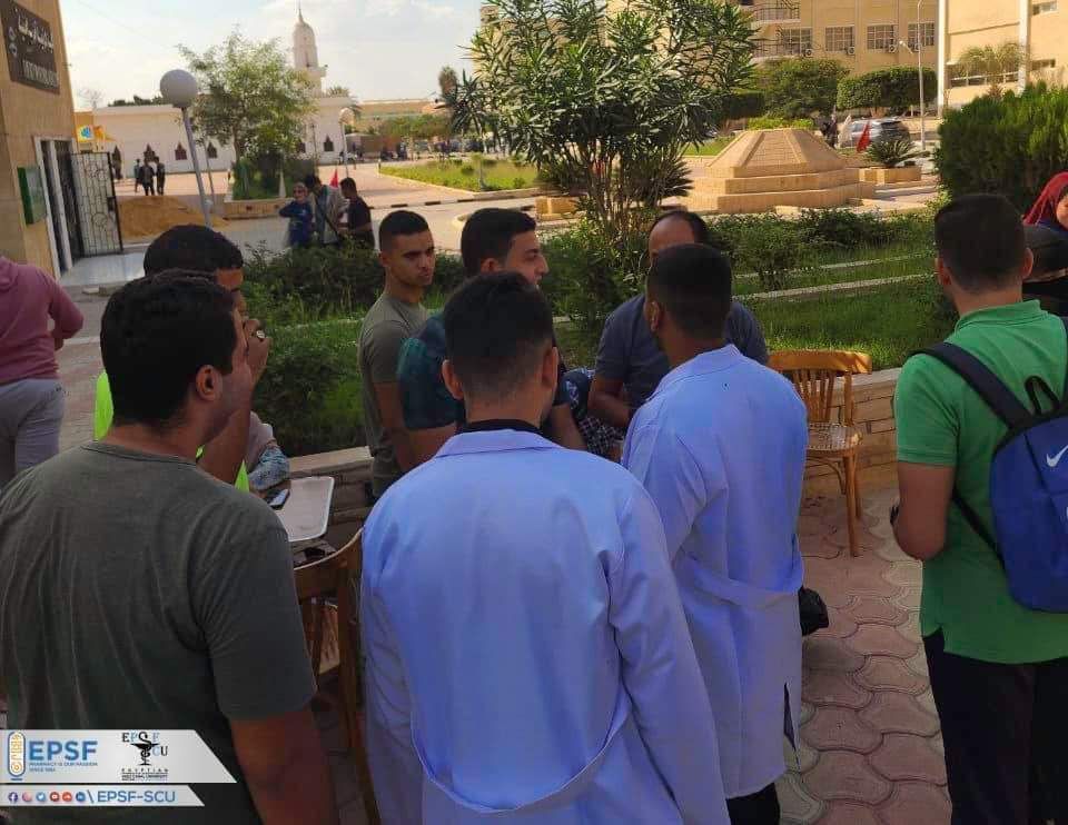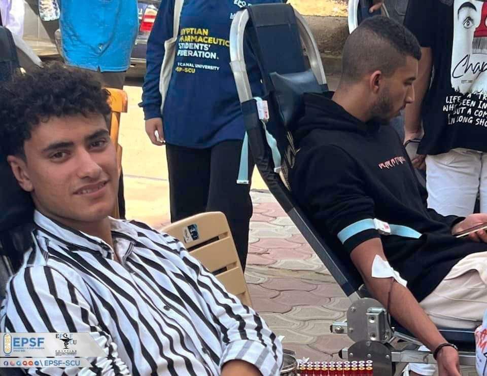 نظم مكتب الاتحاد المصري لطلاب الصيدلة بجامعة قناة السويس حملته للتبرع بالدم، تحت شعار "أنا متبرع مصري، أنا متبرع دائم"، وذلك تحت رعاية الدكتور ناصر مندور رئيس جامعة قناة السويس، وإشراف عام الدكتور محمد عبد النعيم نائب رئيس الجامعة لشئون التعليم والطلاب.