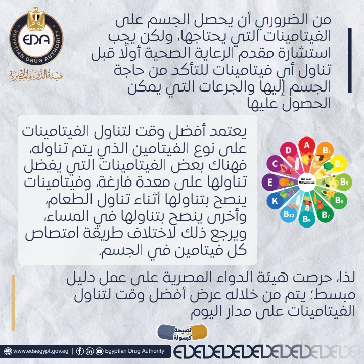 هيئة الدواء تصدر دليلا إرشاديا للموعد المناسب لتناول الفيتامينات