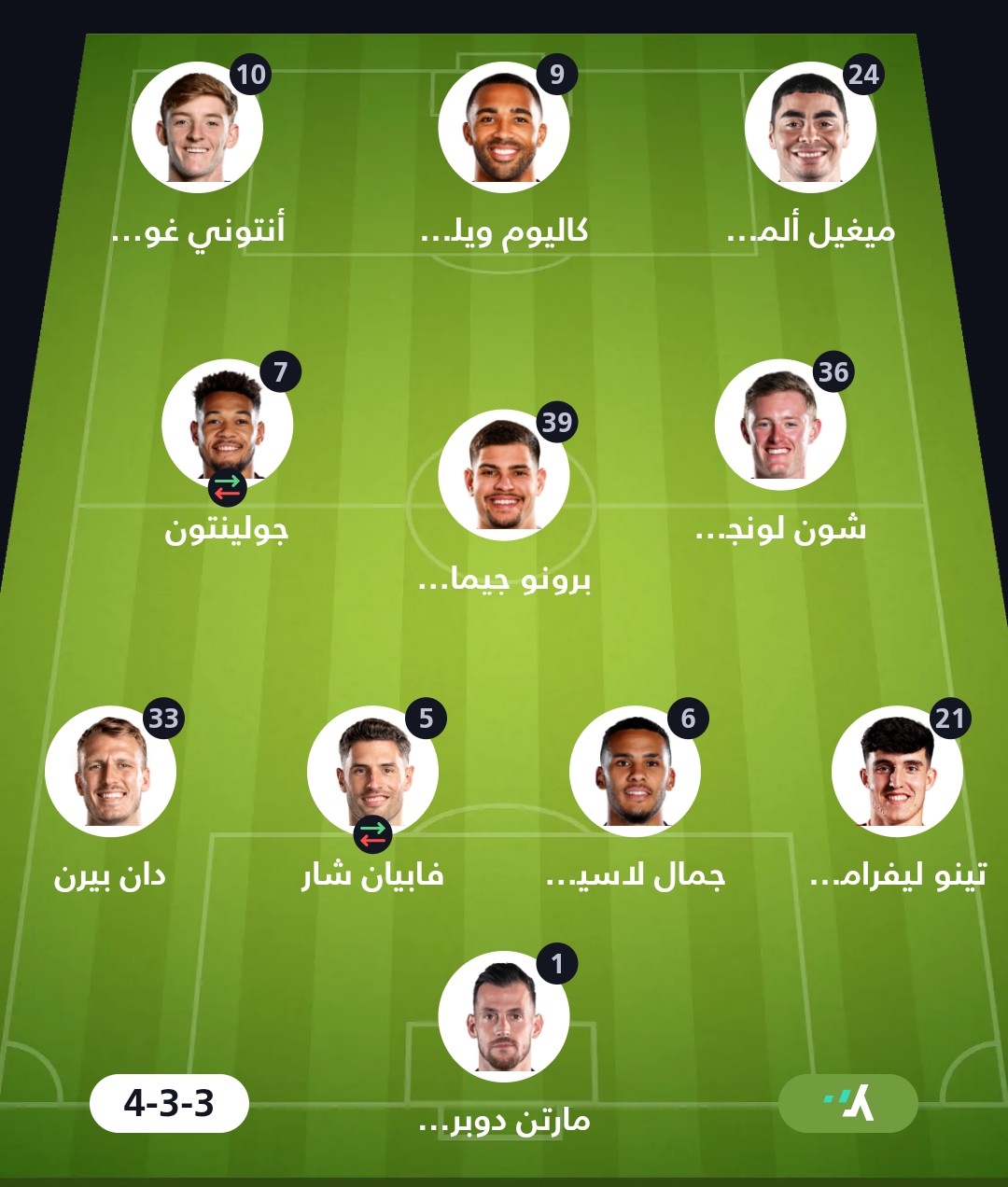 وتصدي قائم فولهام لتسديدة جوردون في الدقيقة 33 لينتهي الشوط الأول سلبيًا.