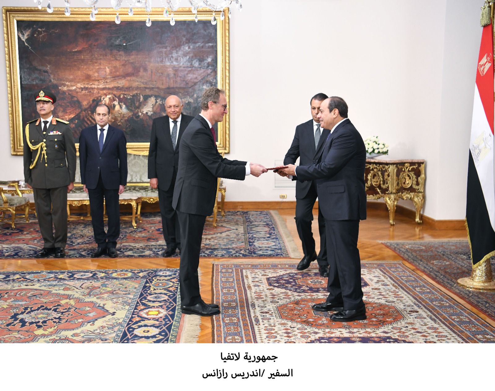 تسلم الرئيس عبد الفتاح السيسي، صباح اليوم، أوراق اعتماد عدد من السفراء لدى جمهورية مصر العربية.