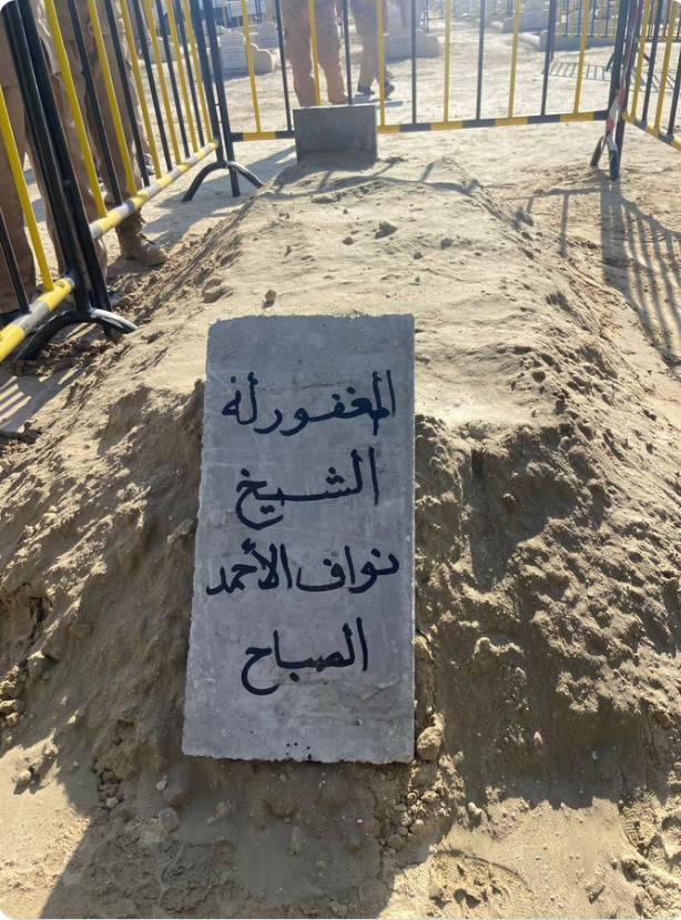 كومة رمل وشاهد.. قبر أمير الكويت يثير الجدل.. والنشطاء: معقولة البساطة دي