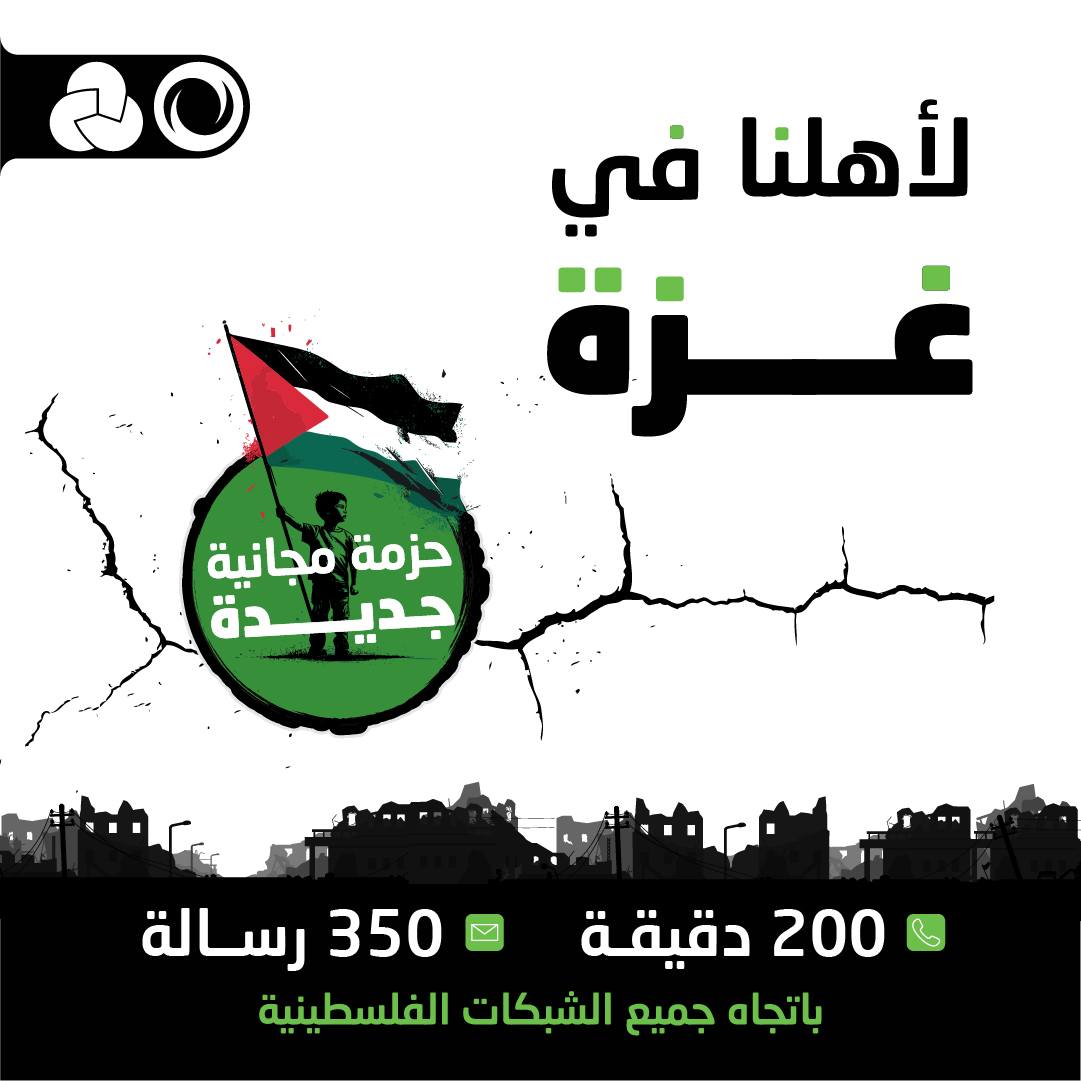 وقالت الشركة عبر صفحتها الرسمية علي موقع التواصل الاجتماعي "فيسبوك: "لجميع أهلنا في غزة.. تم منحكم حزمة دقائق ورسائل مجانية جديدة باتجاه جميع الشبكات الفلسطينية، لتبقوا على تواصل مع أحبائكم في ظل الأوضاع الراهنة.. حمى الله وطننا وشعبنا".