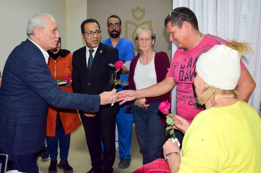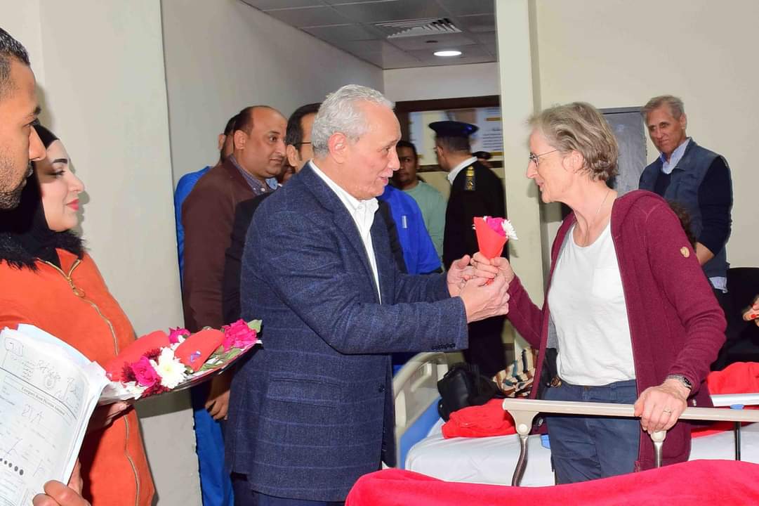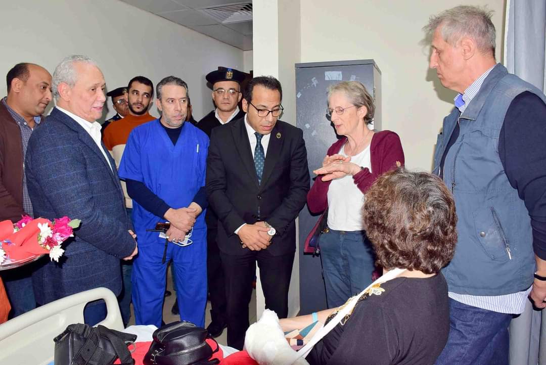 وحرص المحافظ على الاطمئنان على الحالة الصحية للسائحين المصابين وتوزيع باقات من الورود عليهم، والتأكد من توفير الرعاية الطبية الكاملة لهم، وتقديم كافة أوجه الرعاية مع التأكيد على المتابعة المستمرة لحالتهم لحين تماثلهم للشفاء.