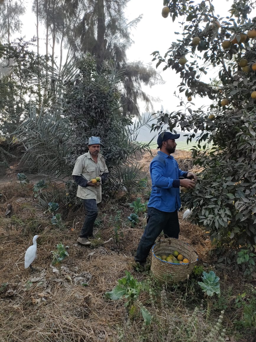 يا محلا ريحته بين الجناين، فرحة في القليوبية بسبب حصاد محصول البرتقال (صور)