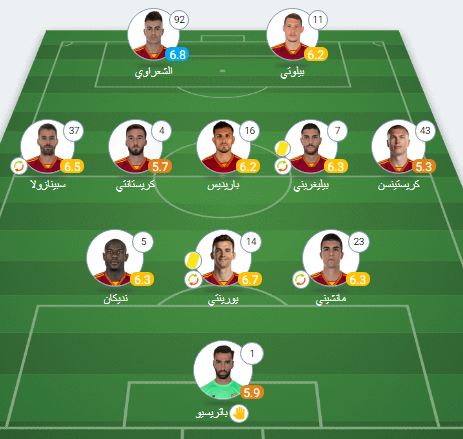 خط الوسط: كريستينسن، بيليجريني، باريديس، كريستانتي، سبينازولا