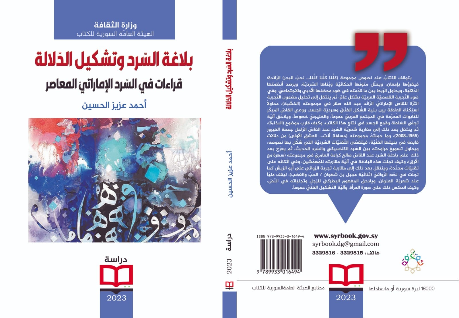 صدر حديثًا عن الهيئة العامة السورية للكتاب، التابعة لوزارة الثقافة السورية، كتاب (بلاغة السرد وتشكيل الدلالة... قراءات في السرد الإماراتي المعاصر) بتوقيع أحمد عزيز الحسين.
