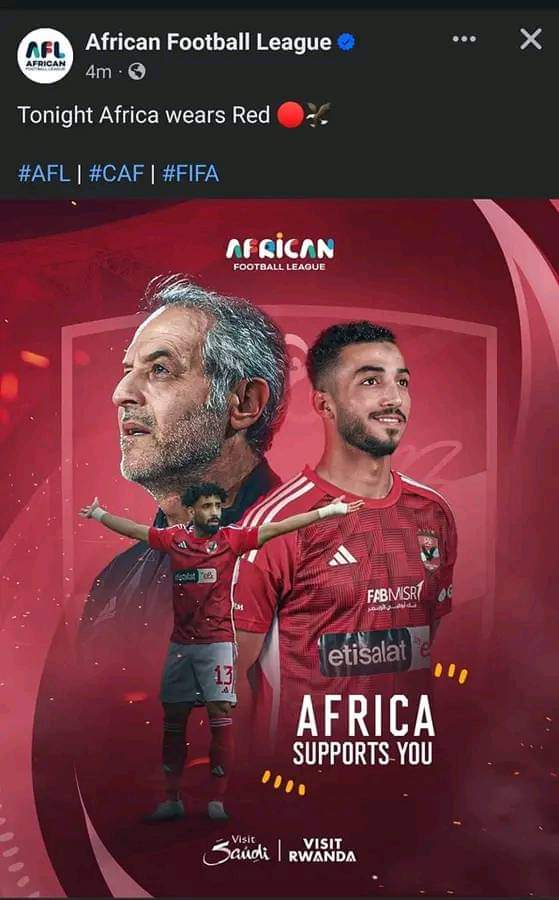 وقال حساب صفحة الدوري الإفريقي إن القارة الإفريقية الليلة بالكامل تدعم الأهلي وستكون باللون الأحمر.