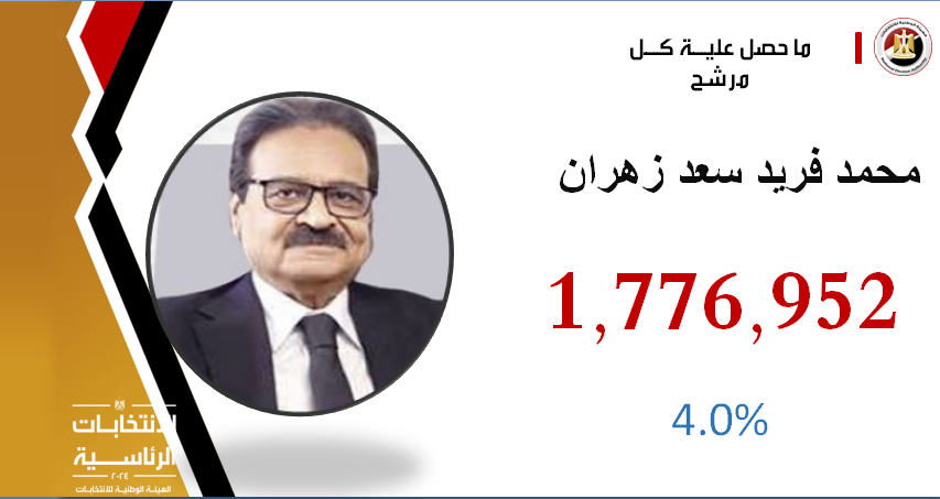 -أصوات المرشح فريد زهران مليون و76 ألف صوت بنسبة 4 %