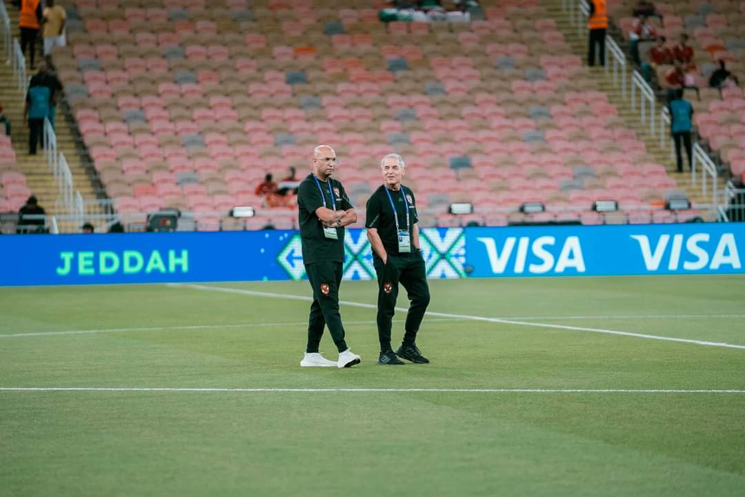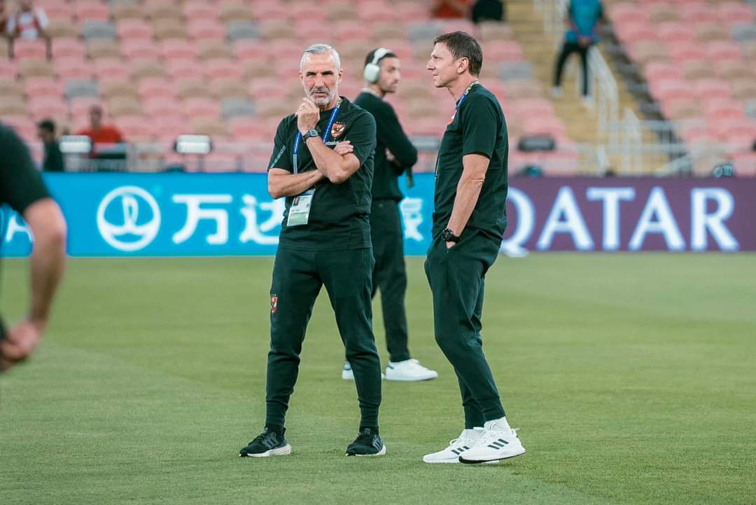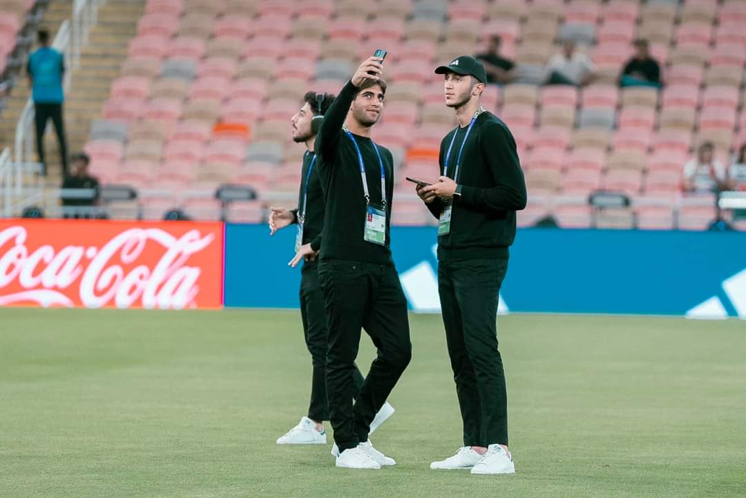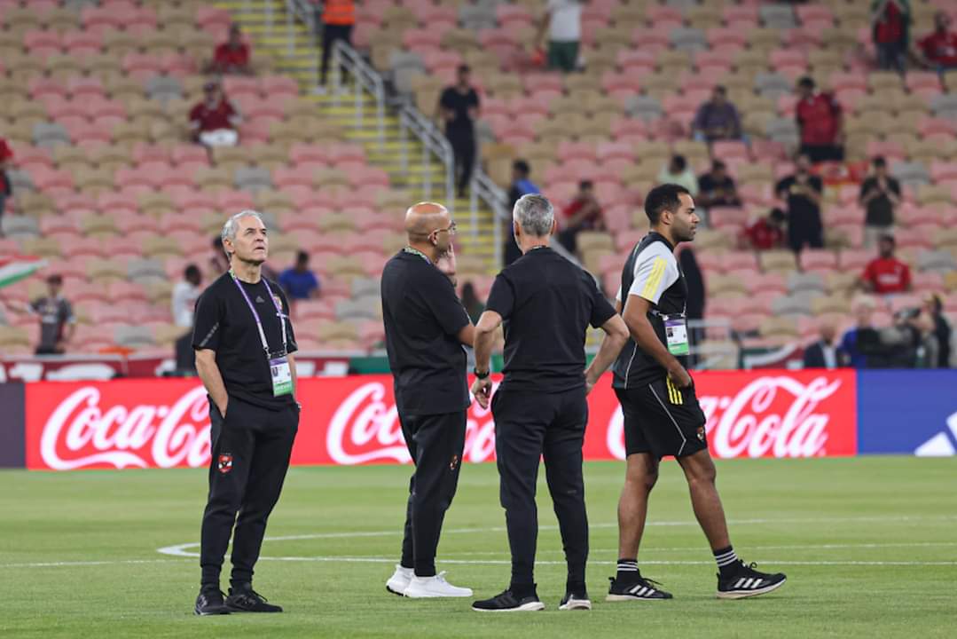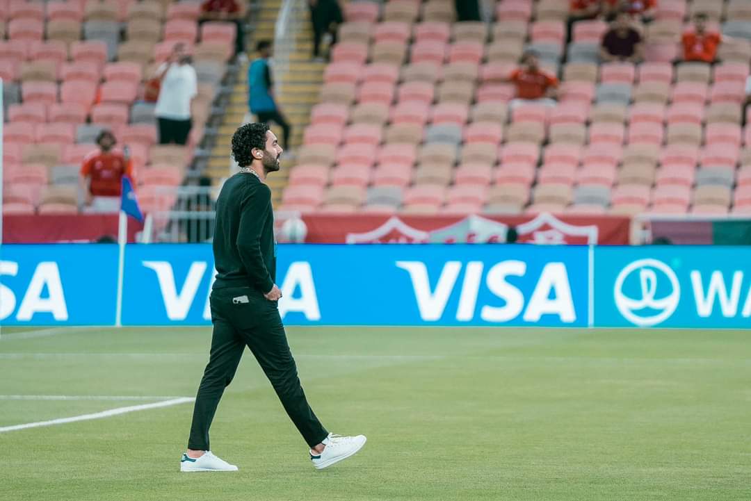 لاعبو الأهلي والجهاز الفني يعاينون أرضية ملعب الجوهرة فور وصولهم (صور)