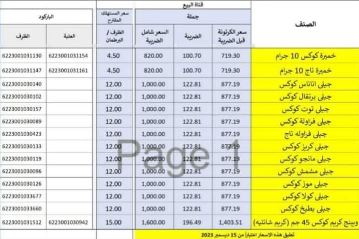 وشملت قائمة أسعار منتجات كوكس وتاج بالزيادة المعلنة بداية من منتصف ديسمبر الجاري كالتالي: