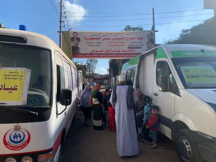 وأشار «عبد الغفار» إلى أن القوافل تضم كافة التخصصات الطبية من الباطنة، والأطفال، والأنف والأذن، والعظام، والجراحة، والرمد، والأسنان، والقلب، والجلدية، والنساء والولادة، وخدمات تنظيم الأسرة، بجانب خدمات الأشعة والتحاليل الطبية، بالإضافة إلى صيدلية تتوافر بها كافة الأدوية، ويتم تحويل الحالات التي تحتاج إلى إجراء عمليات جراحية إلى المستشفيات التابعة للوزارة.