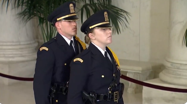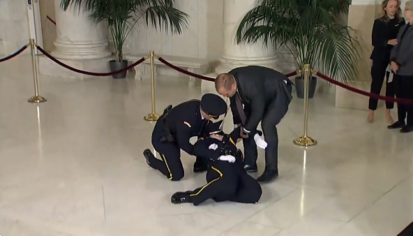 إنهيار حارسة أمام نعش قاضية بالمحكمة العليا الأمريكية