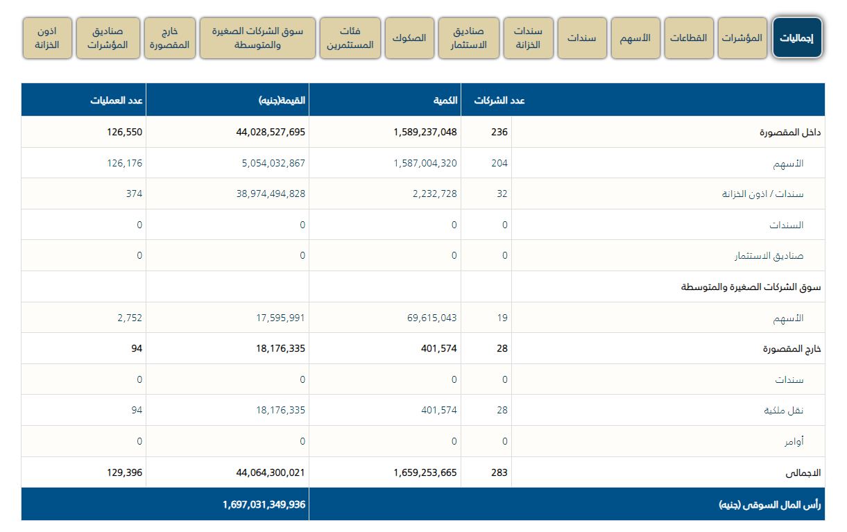 129 ألف عملية تداول بختام حركة تعاملات البورصة المصرية اليوم