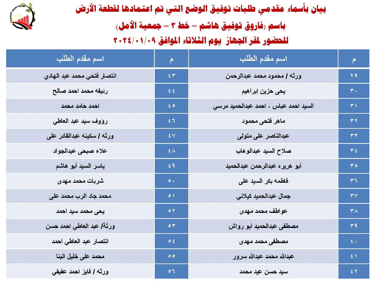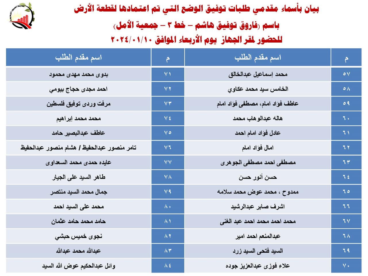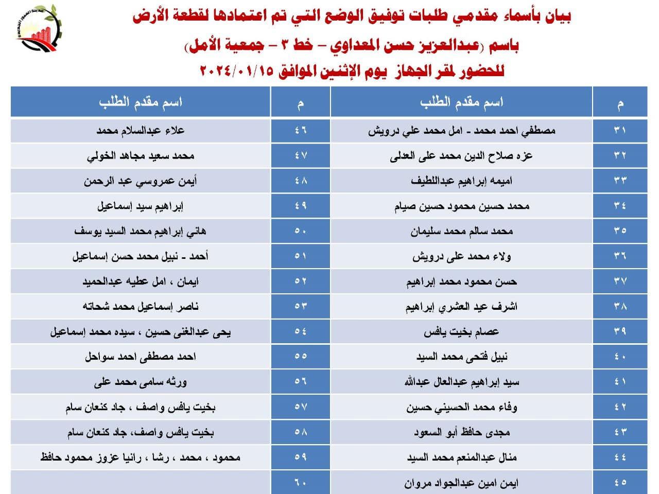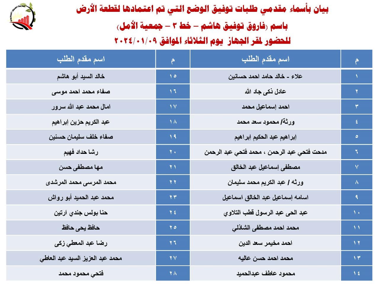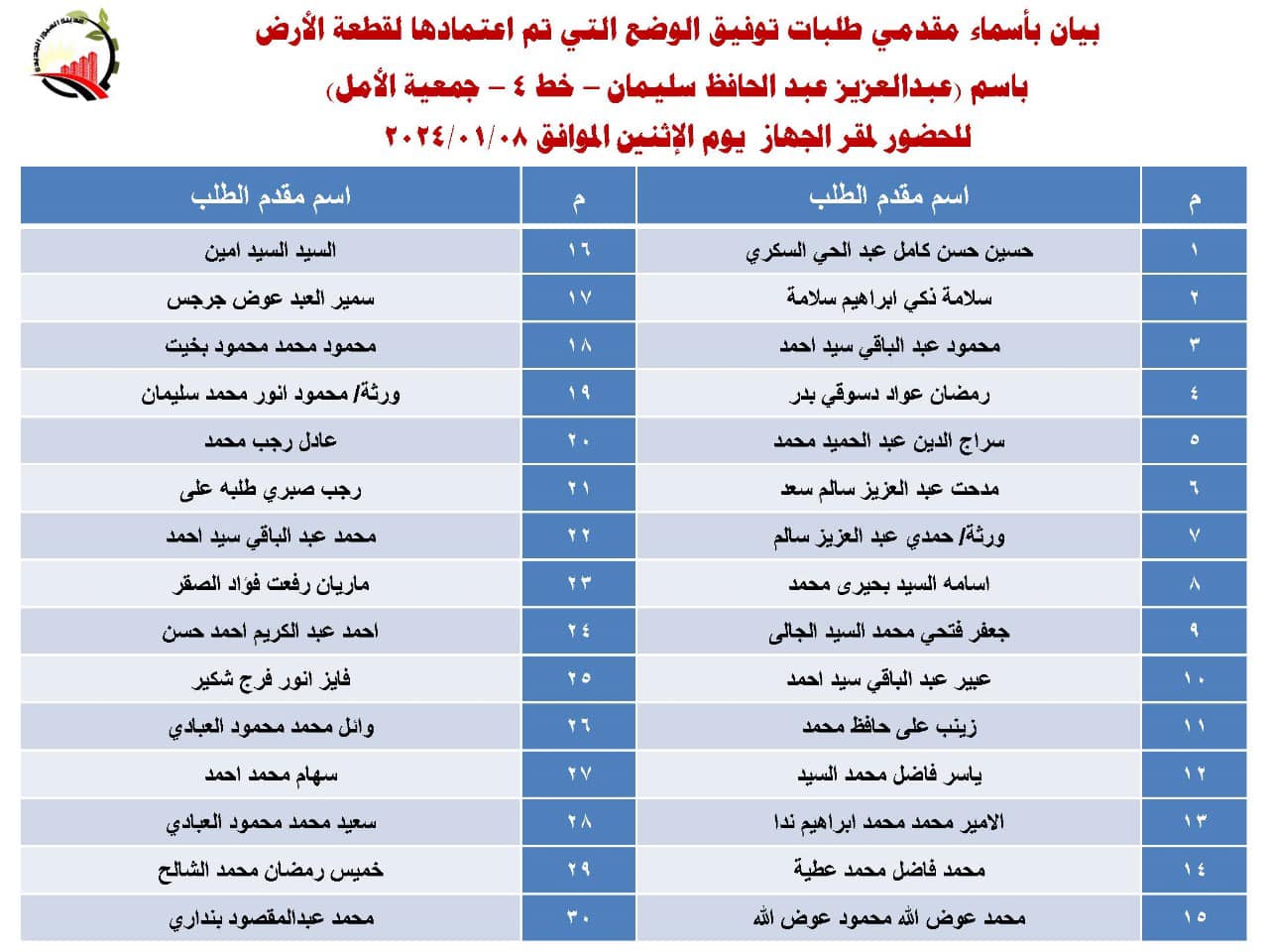 أعلن جهاز مدينة العبور الجديدة أسماء دفعة جديدة من المواطنين، الذين تم اعتماد توفيق الأوضاع لأراضيهم التابعة للمدينة.