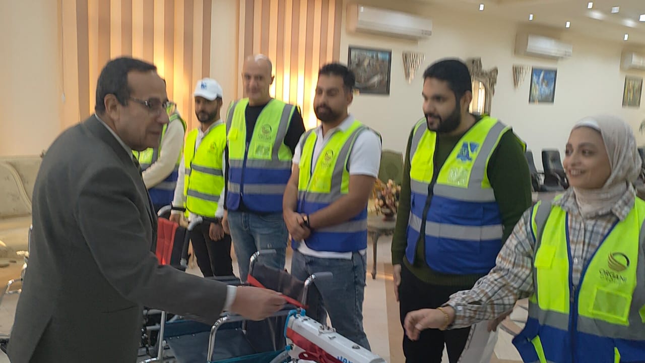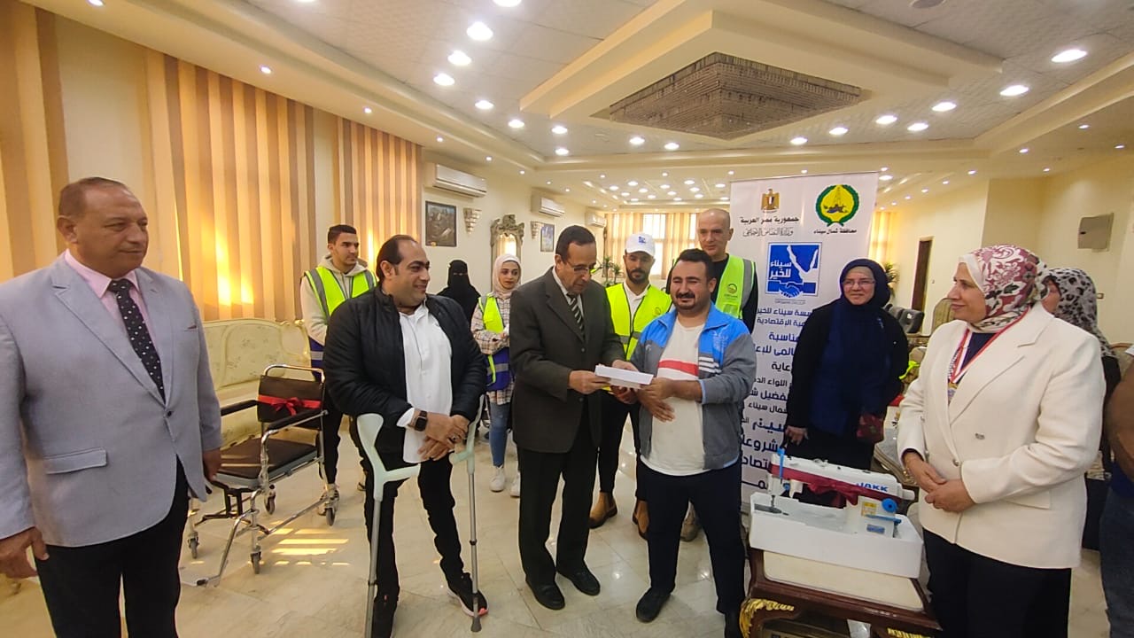 محافظ شمال سيناء يسلم كراسي متحركة وماكينة خياطة لعدد من ذوي الاحتياجات الخاصة