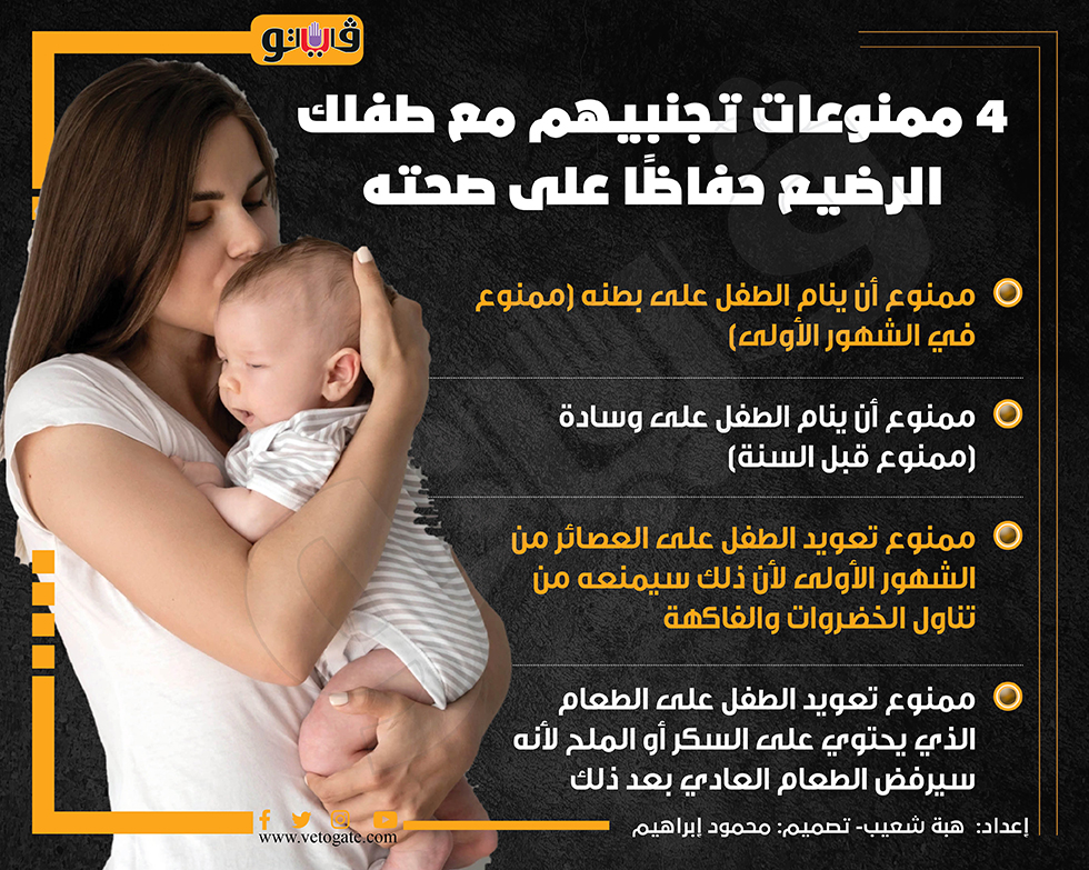 4 ممنوعات تجنبيهم مع طفلك الرضيع حفاظًا على صحته (إنفوجراف)
