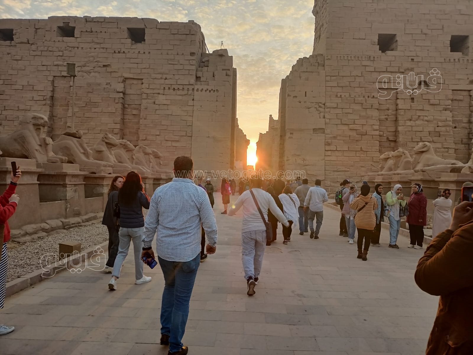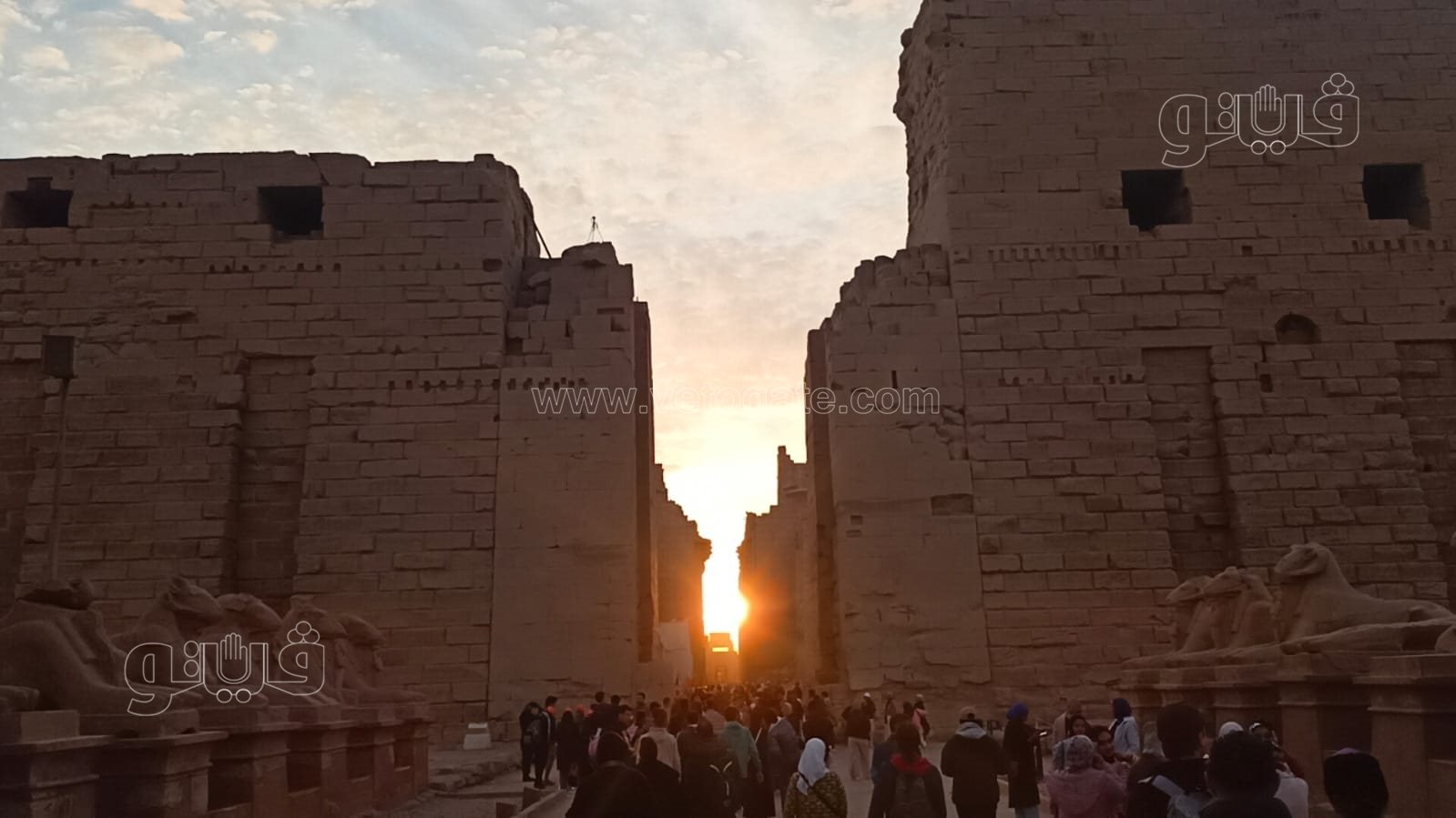بداية الانقلاب الشتوي، 10 صور ترصد ظاهرة تعامد الشمس على قدس الأقداس بمعبد الكرنك
