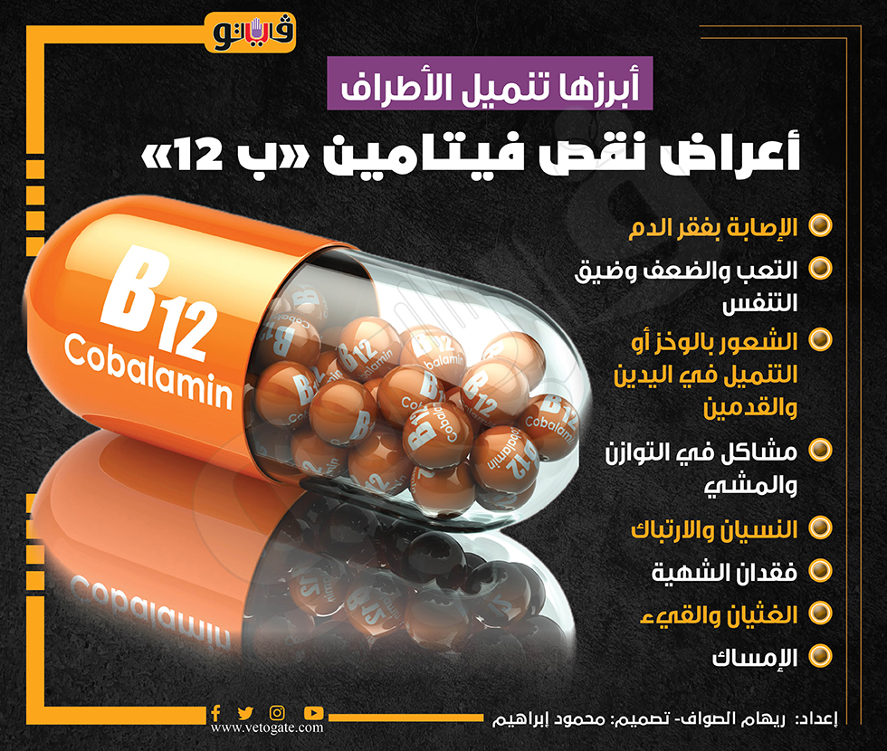 أبرزها تنميل الأطراف، أعراض نقص فيتامين "ب 12" (إنفوجراف)