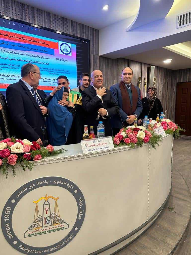 وناقش الرسالة من أعضاء هيئة التدريس كلٌّ من: الدكتور إبراهيم نايل، أستاذ القانون الجنائي بكلية الحقوق جامعة عين شمس (مشرفا ورئيسا)؛ والدكتور مصطفى الجوهري، أستاذ ورئيس قسم القانون الجنائي بكلية الحقوق جامعة عين شمس (مشرفا وعضوا). والدكتور حسام رضا السيد، أستاذ ورئيس قسم القانون التجاري كلية الحقوق جامعة عين شمس (عضوا)؛ والدكتور خالد صفوت بهنساوي، رئيس قسم القانون الجنائي كلية الحقوق جامعة بني سويف (عضوا).