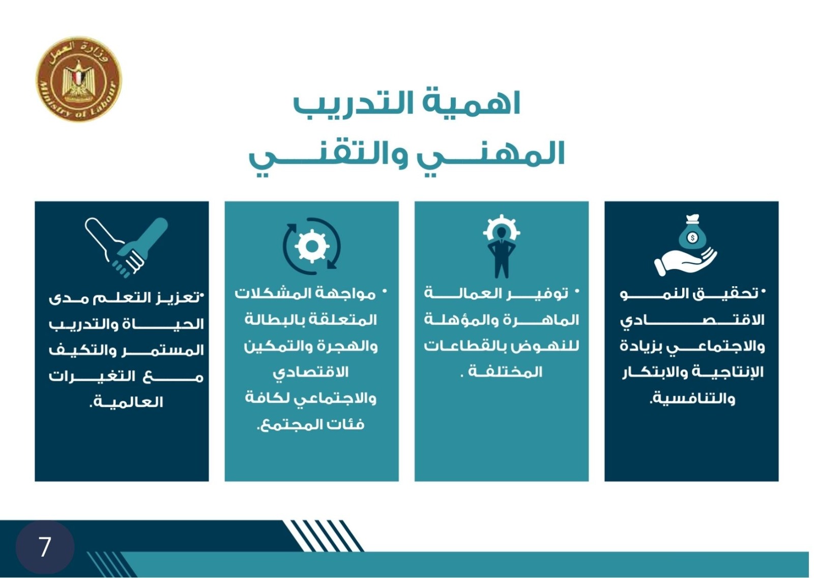 وأوضح "الوزير" خلال الاجتماع المنعقد مساء أمس الخميس أن "الوزارة" حريصة على التطوير المُستمر في منظومة التدريب المهني،بالتعاون مع شركاء التنمية والعمل، خاصة في القطاع الخاص، بهدف تأهيل الشباب لاحتياجات سوق العمل،وبما يتماشى مع معايير الجودة المهنية ومتطلبات السوق المحلية والعالمية.