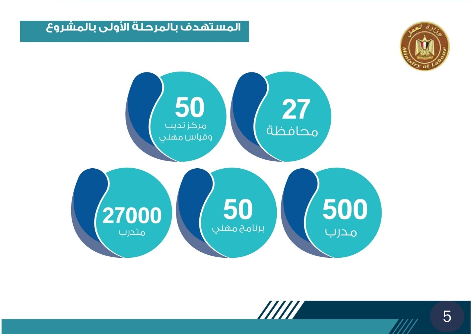 وجاء في البيان أيضًا أن "المشروع يهدف إلى إعداد عامل وفني ومهني وتقني مصري بمستوى عالمي للمساهمة في تحقيق الريادة للدولة المصرية يشارك في بناء الجمهورية الجديدة،وتطوير منظومة التدريب والتأهيل المهني بجميع عناصرها "المواد التدريبية-مخرجات التعلم- المدربين- أساليب وطرق التدريب - الإمكانيات المادية ومراكز التدريب - التقييم وأساليب القياس "،بما يتماشى مع معايير الجودة المهنية ومتطلبات السوق المحلية والعالمية، وباستخدام أحدث الأساليب والوسائل العلمية والتكنولوجية في الإدارة والتدريب والقياس من خلال منصات إلكترونية متطورة، مع تطوير عملية التوظيف في الداخل، وتصدير العمالة للخارج، موضحًا أن الفئات المستهدفة للمشروع هي "مراكز ومؤسسات التدريب المهني على مستوى الجمهورية، والمُدربين والفنيين والاستشاريين المهنيين،والمُتدربين المستهدفين ممن يرغب منهم في إتقان مهنة أو تحويل مسار،وأن يكون حاصلًا على شهادات:" محو أمية أو ابتدائية أو الإعدادية أو المؤهلات المتوسطة من ثانوية عامة أو أزهرية أو دبلومات فنية أو تلمذة صناعية،وكذلك المؤهلات فوق المتوسطة والعليا"..