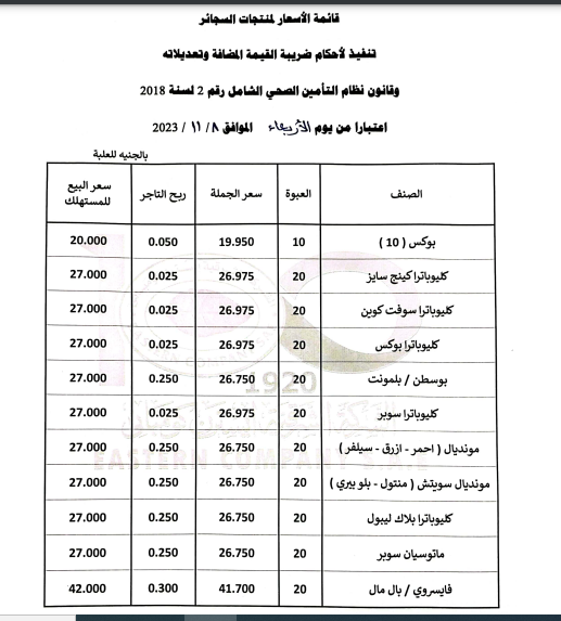 أسعار السجائر الجملة المعلنة رسميًا من الشركة الشرقية للدخان