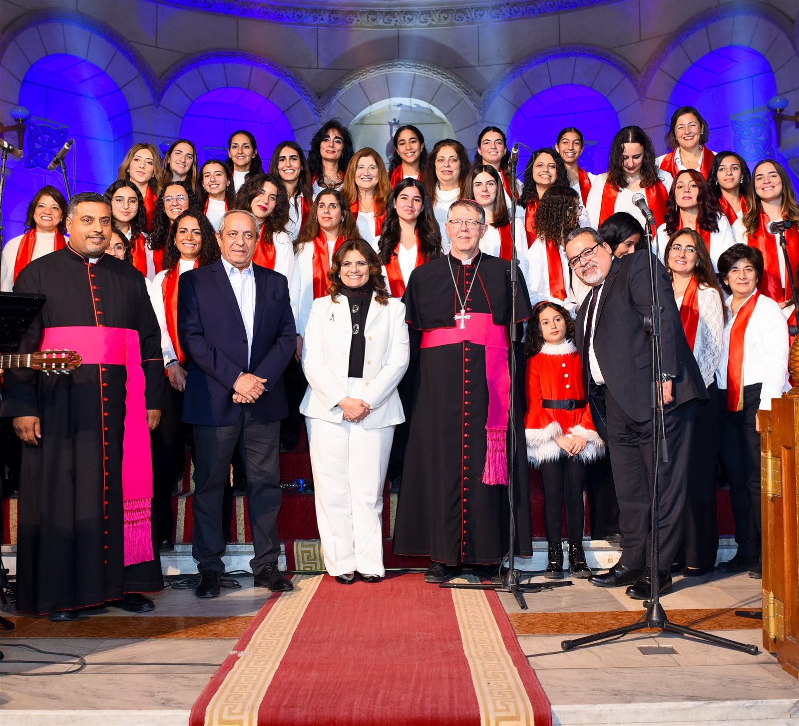 واستمع جميع الحضور الى كورال Priere Vivante بقيادة المايسترو رفيق عطالله، لأغاني وترانيم عيد الميلاد، في أجواء مليئة بالفرح والمحبة في وجود ما يقرب من ألف شخص.