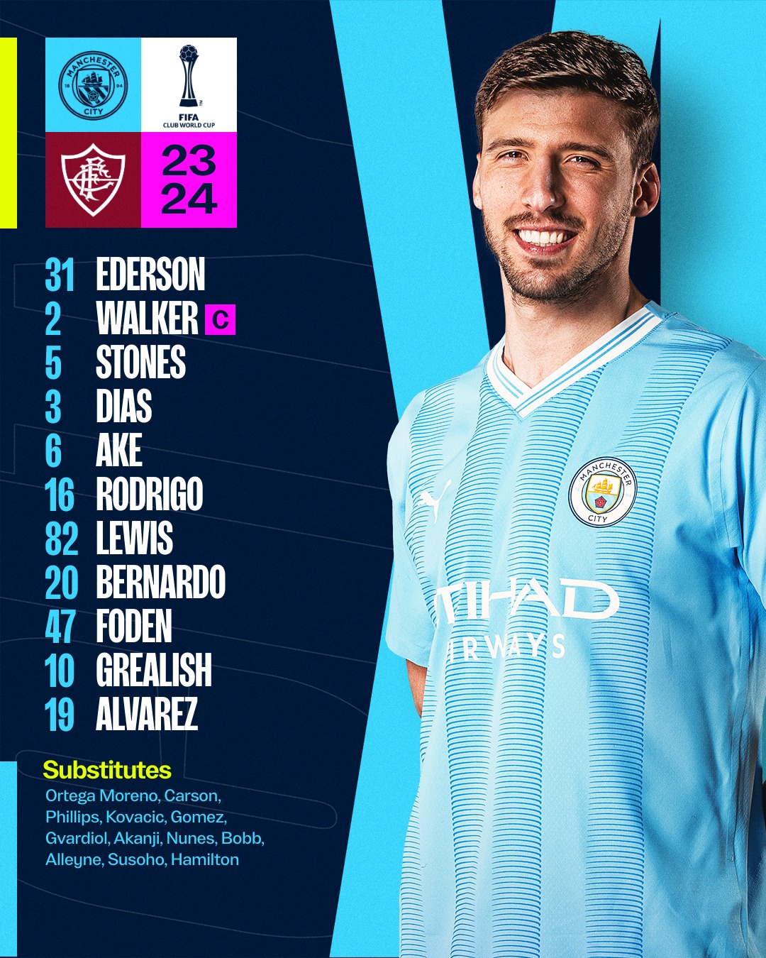 التشكيل الرسمي لفريق مانشستر سيتي أمام فلومينينسي البرازيلي في نهائي مونديال الأندية