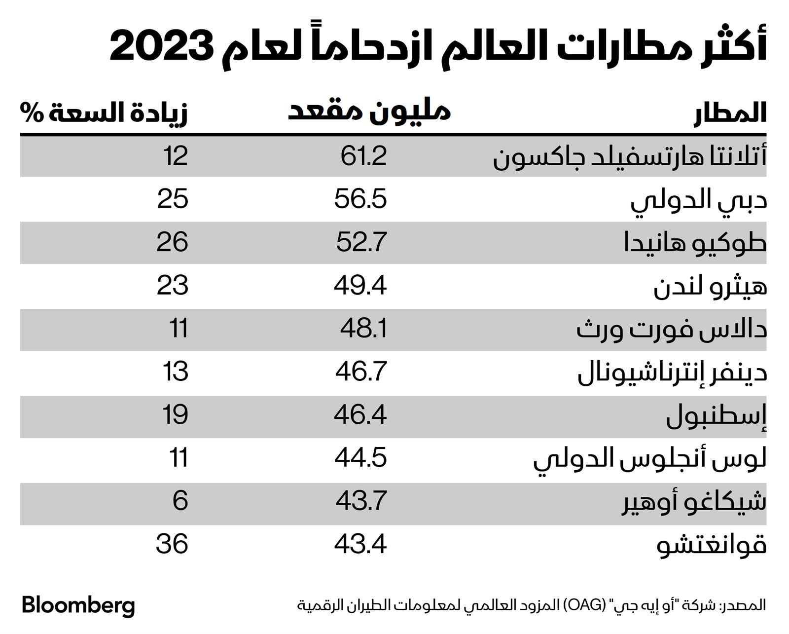 وأوضح دليل الخطوط الجوية الرسمية أن مطار أتلانتا بقي أكثر المطارات ازدحامًا على مستوى العالم في عام 2023.. يليه مطار دبي وهانيدا في طوكيو.