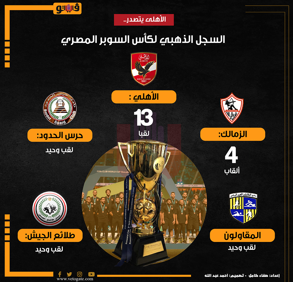 الأهلى يتصدر.. السجل الذهبي لكأس السوبر المصري (إنفوجراف) الإثنين 25/ديسمبر/2023 - 12:13 م 12/25/2023 12:13:38 PM الاهلي، فيتو صفاء كامل شارك طباعة 18 حجم الخط شارك طباعة السوبر المصرى كأس السوبر المصري الأهلي الزمالك المقاولون العرب طلائع الجيش