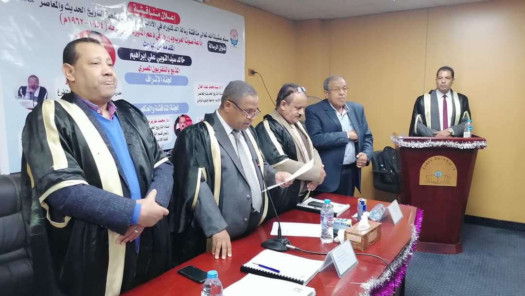 دكتوراه بجامعة أسوان: "صوت العرب" دعمت ثورة الجزائر، ومحمد فوزي لحن النشيد الوطني (صور)