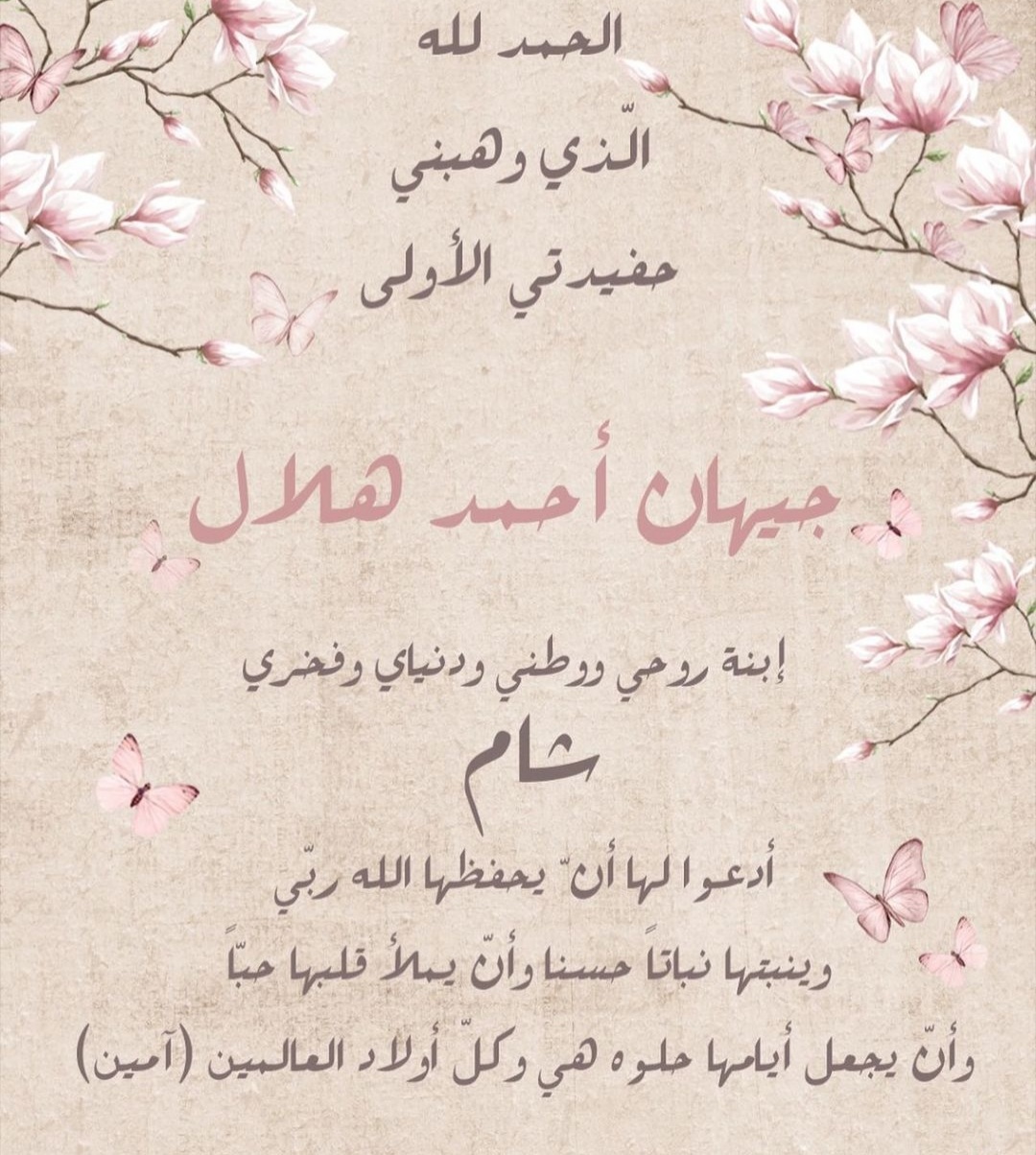 وعلقت شام الذهبي قائلة:"الحمد لله الذي أكمل فرحتي ورزقني بمولودتي الأولى إبنتي جيهان أحمد هلال أدعوا لها أن يحفظها ربي وينبتها نباتا حسنا وأن يملأ قلبها حبًا وأن يجعل أيامها حلوه هي وكل أولاد العالمين (آمين)"