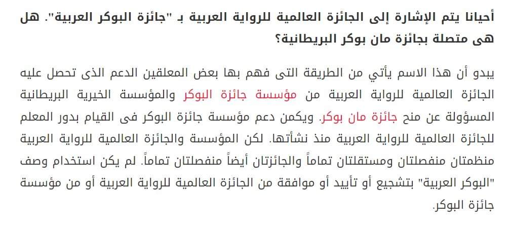 توضيح رسمي حول تسمية جائزة البوكر العربية