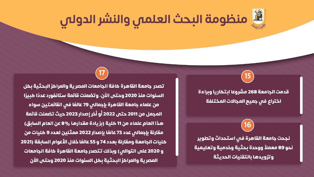 حصاد جامعة القاهرة في منظومة البحث العلمي في 2023